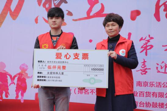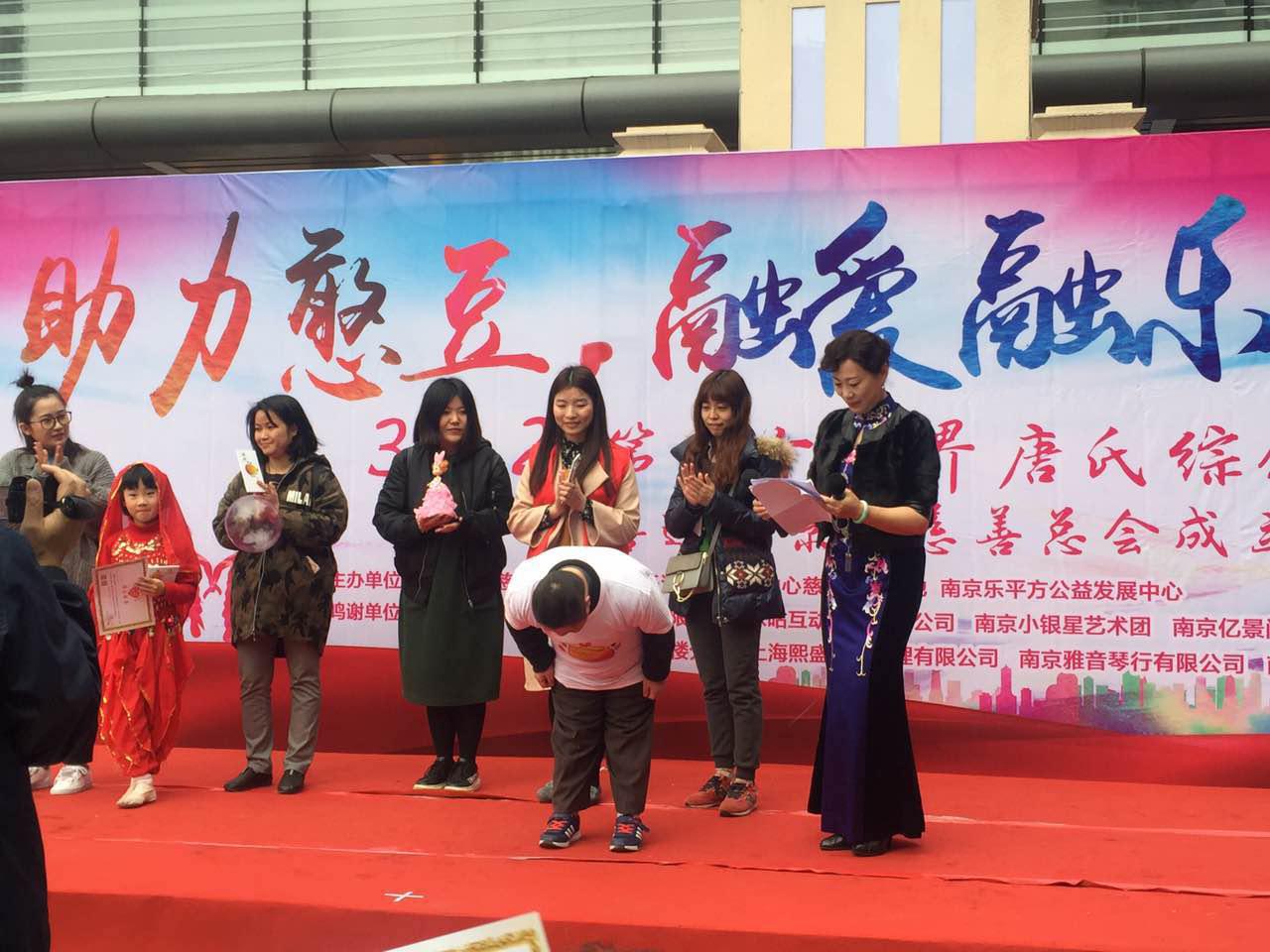 2017年3月18日下午,在第六届世界唐氏综合征日到来之际,南京市慈善总会携手南京妇儿堂医院在南京市著名旅游景区夫子庙茂业天地广场开展以“助力憨豆·融爱融乐”为主题的义演、义捐、义卖义诊的大型慈善活动。